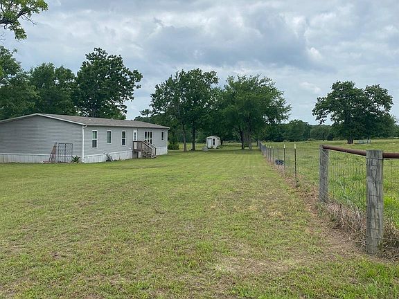 4 bdr,2 bath, electric thru out. Separate shower and garden tub in Master. Walk in pantry .Formal dining room, large family room. Very nice place to live. The extra living quarters would be a great place for family get togethers ,A Shower could be added and it would be complete for living. Plenty of wildlife ,an lots of grazing for livestock. Plenty wildlife to watch and enjoy in two acres of wooded area. This property is on a short two hour drive from Dallas are Houston.