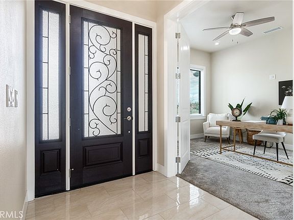 Indulge in luxury living with this exquisite 2021 custom-built home. Boasting 4 bedrooms and 2 1/2 baths, the open floor plan, high ceilings, and granite countertops in the kitchen create an elegant ambiance. Culinary enthusiast will appreciate the double oven and built in garbage compactor and disposal. The living area features a grand fireplace and expansive sliding doors opening to a spacious backyard. Retreat to the master bedroom, complete with a walk-in closet, a luxurious shower and a relaxing soaking bathtub. Nestled on a 2.04- acre lot adorned with maple and pine trees, the property includes a delightful fruit orchard featuring cherries, peaches, nectarines, and citrus trees. This home epitomized modern comfort.
