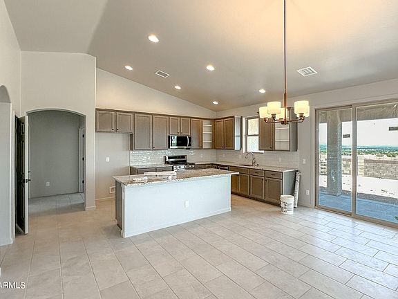 In desirable Kings Ranch, 2,081sf, 4br/2ba home with 3-car garage on 1.2 acres. No Conservation Easement on this lot. Kitchen features over 7' wide island, 42'' Driftwood color stained soft-close cabinets with hardware, granite counter tops throughout, pantry, under cabinet lighting, and subway-tile style backsplash. Bathrooms feature executive height vanities, subway tile surrounds. Primary suite has large walk-in tile shower with 24''x16'' niche, large closet, & double sinks. Floor tile 12''x24'' throughout with upgraded carpet & pad in bedrooms. Ceiling fan pre-wires, soft-water loop, rough plumbing for future tub sink, and dedicated fridge/freezer outlet in garage. Front yard irrigation system & timer. Energy Star Cert, HERS Rated & Environments for Living Guaranteed Home.