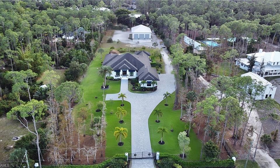 Spacious Livingston Woods Estate Welcome to this stunning 4-bedroom + office residence situated on 2.5 acres in the highly desirable Livingston Woods neighborhood. Designed with comfort and functionality in mind, this home offers a bright open layout, tall ceilings, and impact-resistant windows that flood the interior with natural light. Large walk-in closets, custom cabinets, quartz and quartzite, gas heated pool, gas stove, gas water heather. The expansive living areas feature warm wood flooring, while the bathrooms are elegantly finished with tile. A generous laundry room and a versatile utility/mud room add everyday convenience. The oversized 3-car attached garage provides ample storage and easy access. Step outside to your own private oasis—complete with a fully equipped outdoor kitchen, a large pool with spa, and a spacious pool deck perfect for entertaining or relaxing under the Florida sun. Outdoors, the property boasts a beautifully landscaped and fully cleared lot, creating a serene retreat just minutes from shopping, dining, and the world-renowned Naples beaches. A true highlight of this estate is the detached 3,500 sq. ft. air-conditioned boathouse/garage—a rare find with four large roll-up doors, high ceilings, abundant natural light, and endless possibilities for storage, hobbies, or a workshop. Whether you’re seeking privacy, space, or a place to store your boat, cars, or toys, this property combines it all in one exceptional package.