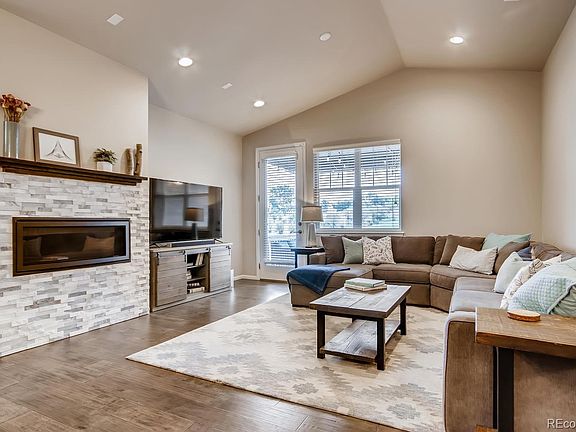 Don't miss this exquisite ranch style home with a walk-out basement, backing to neighborhood open space. This home features a spacious master suite with walk-in closet, master bath with designer tile and dual vanities, an open-concept floor plan that would be great for entertaining, including vaulted ceilings and gas fireplace in the great room, beautiful chef's kitchen with double ovens, gas cooktop, striking quartz counters, and a huge farm sink. Main floor boasts a second large bedroom plus a study that could be used as a third bedroom or office, laundry room with tub, mud-room, and beautiful foyer entry. Enjoy spending time on the balcony overlooking the green space behind the home. The walkout basement is a full-sized, unfinished basement that is perfect for future expansion or storage. Neighborhood amenities include a pool, hot tub, community center, trails, and the Ward Lake & Beach Club. The fenced back yard includes paver stone patio and low-maintenance astro turf. Nearby amenities include shopping, dining, entertainment, trails, and more!