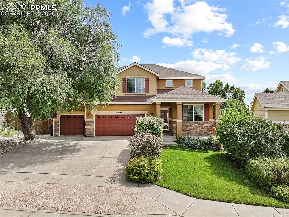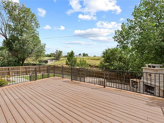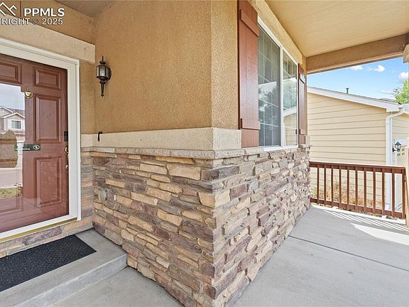 ASSUMABLE LOAN AVAILABLE! Immaculate Home with Gourmet Kitchen, Finished Basement, and Stunning Pikes Peak Views. **WELCOME to this beautiful two-story home nestled in a quiet & mature neighborhood — the perfect blend of comfort, elegance, and practicality. With 6 spacious bedrooms, 4 full bathrooms, and over 3,300 square feet of finished living space, this home offers all the room you need to live, work, and entertain in style. **STEP up to the covered front porch and into the formal living room, where gleaming hardwood floors and upgraded lighting create an inviting first impression. Just beyond, the heart of the home is the gourmet kitchen, beautifully outfitted with Birch 42" cabinetry, granite countertops, a glass tile backsplash, and a large island with seating — perfect for casual dining or prepping your next culinary creation. A walk-in pantry, under-cabinet lighting, and stainless steel appliances complete the space. **ENJOY easy indoor-outdoor flow with a walk-out to the Fiberon/Trex deck, complete with a roll-out awning — ideal for BBQs, morning coffee, or simply soaking in the majestic Pikes Peak views. The professionally landscaped backyard offers even more: a custom stone patio with a built-in fireplace, perfect for starlit gatherings or cozy evenings year-round. **UPSTAIRS, the primary suite is a private retreat with a 5-piece bath featuring a garden soaking tub, quartz finishes, and a cedar-lined walk-in closet. Three additional bedrooms and a full bath complete the upper level, offering plenty of space for family, guests, or creative use. **Downstairs, the fully finished basement includes a large family room, two more bedrooms, a full bathroom, and a dedicated office or game room. **SELLER INCENTIVES POSSIBLE **LOCATED minutes from schools (elementary school 1 block away), shopping, parks, and a quick commute to Fort Carson, Peterson AFB, and Cheyenne Mountain.