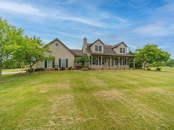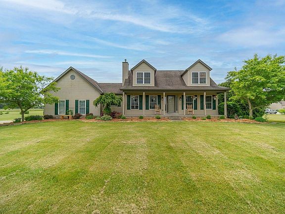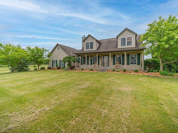 Welcome to this stunning custom-built home situated on nearly 2 acres. This well-kept home features a large kitchen with granite countertops, travertine backsplash, solid walnut cabinets, and stainless steel appliances, spacious great room with fireplace, 1st floor owner's suite offering a walk-in closet, private bath with a double bowl custom marble vanity, and a walk-in shower with a bench. The 2nd floor features 2 huge bedrooms with tons of closet space, and a full bathroom, The full basement is partially drywalled and is waiting to be finished for extra living space. The 24 x 40 heated pole barn with Reznor overhead furnace can be used for any hobby you choose. Enjoy your evenings on the oversized patio or covered front porch. Schedule your private viewing today! This won't last!