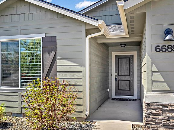 This stunning 4 bdrm, 2 bath single level home is the perfect blend of modern luxury & cozy charm. Inside discover an upgraded kitchen with solid surface countertops, laminate floors, & corner pantry. The spacious living area is adorned with shiplap accents, built-ins, open shelving, & upgraded lighting. The oversized primary is complete with a walk-in closet, ensuite bathroom, dual vanities, & open shelving for added convenience. Three additional bedrooms offer versatility & comfort, 4th bedroom could be an office or bonus room. Experience the convenience of a large mudroom with laundry & storage. Outside, enjoy the privacy & security provided by the vinyl fencing that surrounds the property, creating an oasis for outdoor enjoyment. Located between Kuna & Meridian, this home offers easy access to the 10-mile freeway entrance, making commuting a breeze. With its better-than-new condition & thoughtful upgrades throughout, this home is truly a rare find. Don't miss your chance to make this your forever home!