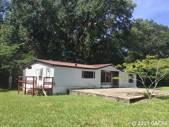 This 3 bedroom 2 bathroom mobile home features great room / dining room combination with fireplace, eat-in kitchen, separate laundry room and split floor plan. The home needs some updating but is situated on a large 1.80 acre lot, with low Gilchrist county property taxes. For this price, it has the potential to be a nice home.