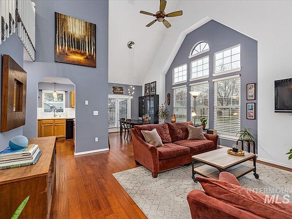 In desirable NW Boise, this home is a testament to meticulous care & thoughtful updates. Step into a haven of modern comfort with new interior paint & HVAC system (2022). The abundance of natural light in the main living space is accentuated by a vaulted ceiling and new windows (2022). A gas fireplace adds warmth, while gorgeous wood laminate graces the main level. The kitchen boasts a pantry and new Bosch dishwasher. Upstairs, the private retreat primary suite stands alone, featuring vaulted ceilings & new carpet. Unmatched curb appeal boasts fresh exterior paint (2022) that radiates modern elegance. Mature landscaping, adorned with beautiful trees & equipped with drip lines, creates a serene & inviting atmosphere. Embrace the outdoors with room for RV parking & multiple entertainment areas, creating a space you'll truly cherish. Near the River Golf Course, Ridge to Rivers, shopping, & downtown Boise, this home is nestled in a walkable neighborhood offering a perfect blend of tranquility & accessibility.