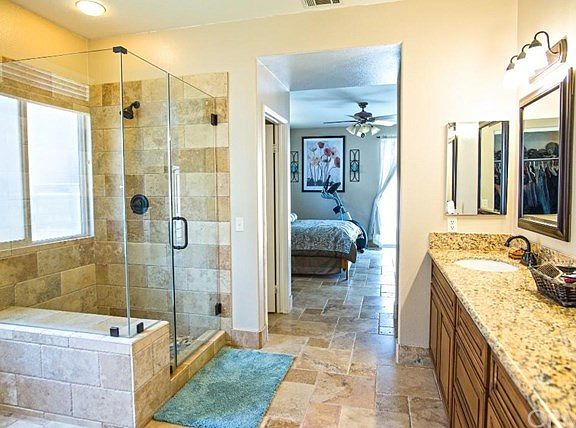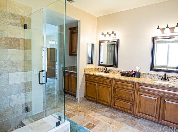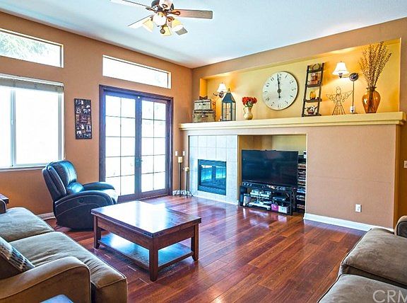 Beautiful Eastvale single story pool home. 4 bedrooms, 2 bathrooms. Custom Mahogany front door. Open floor plan with Island kitchen that opens to the family room. Dual French doors, Heatilator fire place and wood laminate flooring. Stainless steel appliances include NEW dishwasher and microwave. Walk in pantry. Separate living/Dining room. Inside laundry room. Remodeled Master bathroom with granite counter tops and new cabinets. Tumbled stone in Master bedroom/bathroom. RV parking with concrete pad and custom Wooden RV gate. Concrete patio with Sport pool and heated spa. Ceiling fans in all rooms, Water softener system. All block wall fencing. 3 car garage. NEW lifetime paint on exterior of home. Solar panels (see remarks) New community, 15 parks, 2 water splash play parks, 3 dog parks, award winning CNUSD schools.