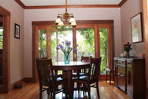 This Craftsman Bungalow home has been tastefully renovated and includes; wood floors, built-in book cases, dual pane windows, a wood stove, plus forced air heating.French doors from the dining room open up to your own private stone paved oasis with southern exposure. A separate back yard features raised garden beds, fruit trees, deck, and hot tub. Centrally located on a quiet street in the Victorian Village of Ferndale.<br/>