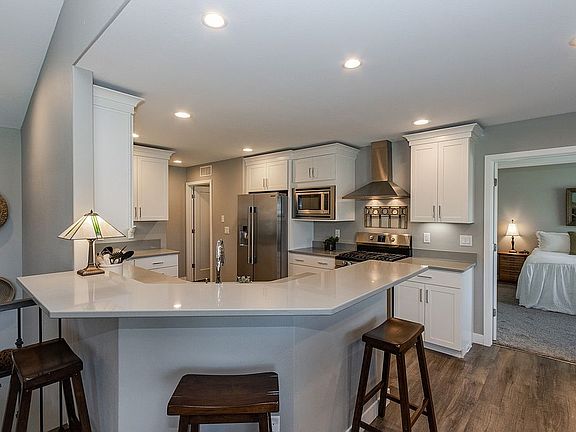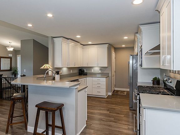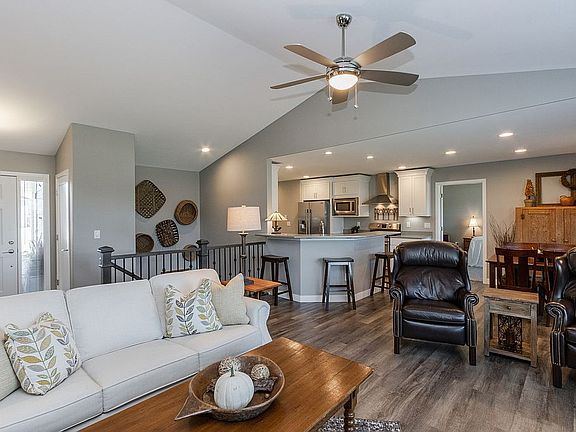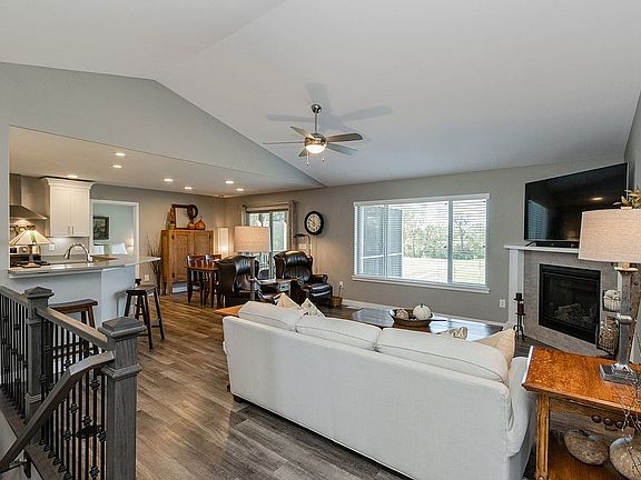This barely lived in zero entry, walk out Ranch with 5BR 3BA is sure to impress. Open floor plan offers luxury vinyl plank through main living area, vaulted ceilings and a cozy gas fireplace. Kitchen boasts quartz countertops, breakfast bar, SS appliances and white finished cabinets. Enjoy your evenings in the screened porch off the dining area. Large tiled shower in MBR w/glass surround, dual vanities and a walk in closet. 2" wood blinds throughout. LL offers large family room, ample storage and walkout to patio. Oversized 3 car garage and central vac. Upgrades: Carpet and pad, whole home humidifier, side garage door and landscaping. Please contact seller directly for a private showing.