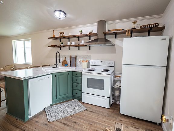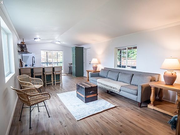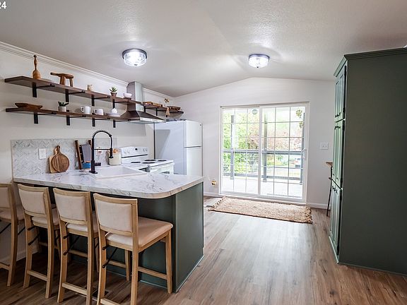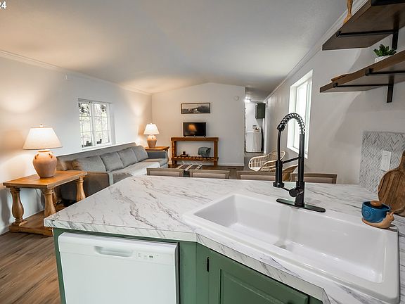 3 bedroom fully remodeled manufactured home with permitted additions per seller on large 0.23 acre lot. New roof, siding, walls, doors, windows, interior/exterior paint, counters, sinks, tile backsplash, fixtures, appliances, shower, plumbing, LVP waterproof flooring, decking and a fenced yard with a beautiful view, deer and turkeys in the yard often. Additional mud room/office area. Fridge, washer & dryer included. It has a great detached garage and a fairly level lot at the top of the hill.