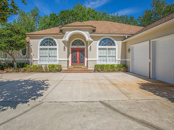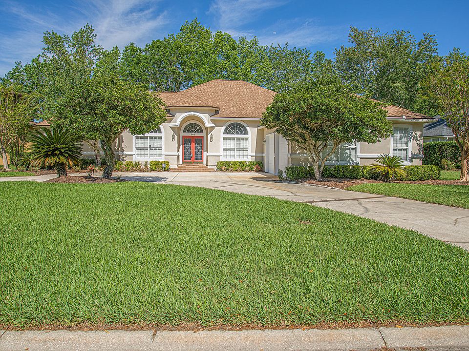 Beautiful custom home in the heart of Orange Park Country Club! Walking distance to OP Pool and Playground. Spacious open floor plan with tile and wood flooring, carpeted living areas. Tiled Foyer adjoins Formal Dining and Living rooms. Fully equipped kitchen with granite counter tops and breakfast nook that overlooks large family room with wood burning fireplace and wet bar. The perfect space for spending family time or entertaining. The master suite features carpeted floors, HUGE walk in closet and includes sitting area accented by bay windows. French doors lead onto extended screened lanai with brick flooring and overlooking a paved walkway along the back yard perimeter. Freshly painted Interior and exterior. Includes Home Owner Warranty.