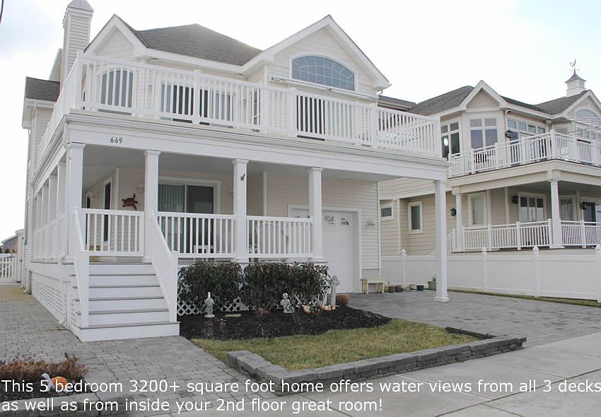 DRAMATIC OCEAN VIEWS FROM THIS WELL MAINTAINED THREE STORY UPSIDE DOWN STYLE HOME WITH A RESORT FEEL REAR YARD HAVING GORGEOUS POOL, SPA AND CABANA. The five bedroom, five bath floor plan allows ample sized rooms, en-suite baths, first floor family room with access to a covered porch and wide hallways. The second floor great room has fabulous vaulted ceilings, attractive kitchen with center island, granite tops, large dining area, living room with fireplace all of which are oriented to ASTOUNDING inlet water views. The comfortable great room flows to a wonderful sun deck with natural gas feed for BBQ grilling and plenty of space for entertaining while enjoying the fabulous water views. The third floor master bedroom is expansive with ample closets, wonderful master bath and private deck. The rear yard has a stunning, custom in ground, heated pool with water feature, spa and an open cabana to relax and watch tv. Other features include multi zoned HVAC, attached garage, extra storage in the yard and a beautifully landscaped lot. The home is sold attractively furnished and ready for your immediate occupancy.