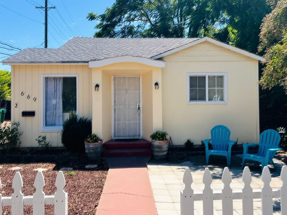 In the heart of Chico near Hooker Oak and Neil Dow Elementary, .6 miles to Enloe, walking distance to a number of businesses. Darling bungalow cottage with a private front yard and lots of curb appeal! A 3 bedroom, 1 bathroom house - All bedrooms have high efficiency mini-split HVAC units and ceiling fans! Kitchen has tons of storage and cabinet space, and all major appliances: refrigerator, microwave, oven, and dishwasher. In unit stackable washer and dryer. 3 off-street pull-in parking spaces for tenants. Tenant is responsible for PG&E + Cal Water. Move in date: Available now Please reach out with any additional questions or to schedule a viewing. 1-year lease with option of month to month after 1 year.