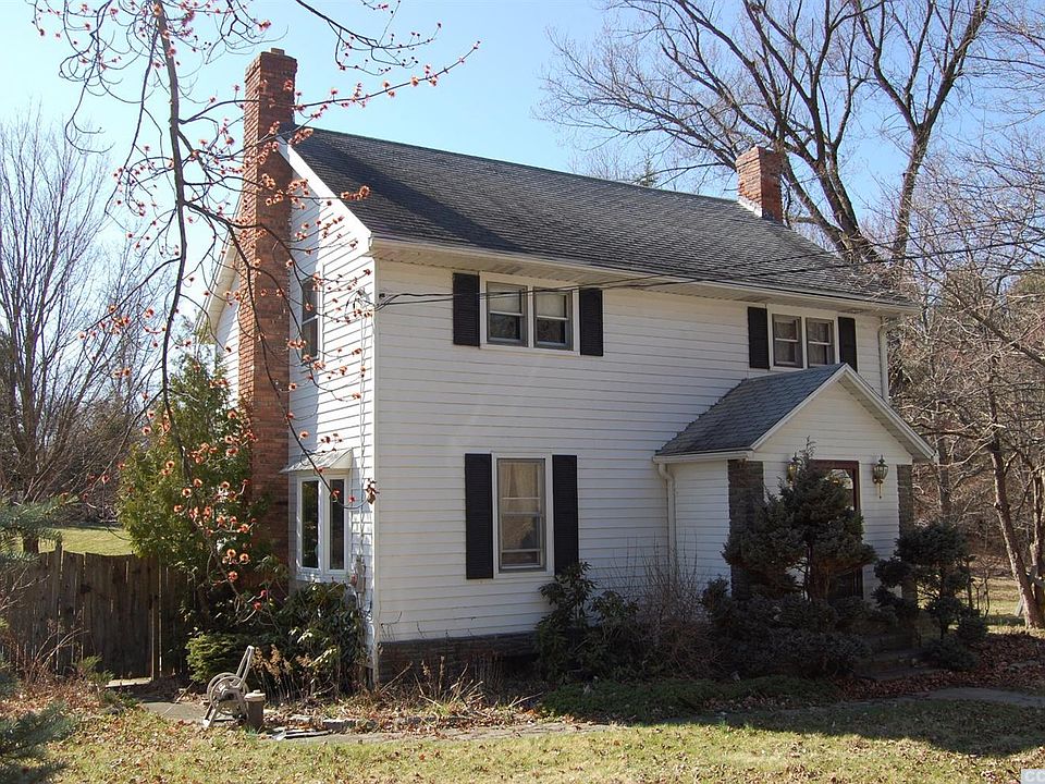 Vintage home with fantastic setting. Includes timber framed barn, 6 beautiful acres, pond, in-ground pool surrounded by hand cut and laid terrace. 3 bedrooms, recently remodeled bathroom, a nice combination of old and updated. Versatile open first floor plan with family room which has 2 sliders out to wrought iron fenced in pool/patio/terrace area. You can see the pond just beyond the pool. Level cleared acreage works for animals or is easy to maintain as a beautiful expansive lawn. Convenient location only minutes away from shopping and services. Located in an area of like homes.