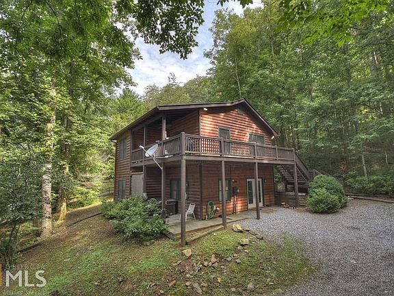 Come and Get Cozy at this Rock Creek Retreat......This cabin comes complete with with furnishings and New appliances! Location is also a bonus with this charming cabin nestled just minutes from the famous Downtown Blue Ridge and historic Ellijay. With 4 spacious bedrooms, an open-feel kitchen, living area with cathedral ceilings, large game room, laundry on the main level, hot tub, and a full finished basement you can enjoy entertaining at its finest! The airy feel of the wood interior sets this cabin apart from any others. Sit and enjoy the rushing sounds of the creek from one of the large covered porches. This rustic community has so much to offer hiking/biking trails, lakes, rivers, and more...great for a weekend getaway or investment vacation potential!