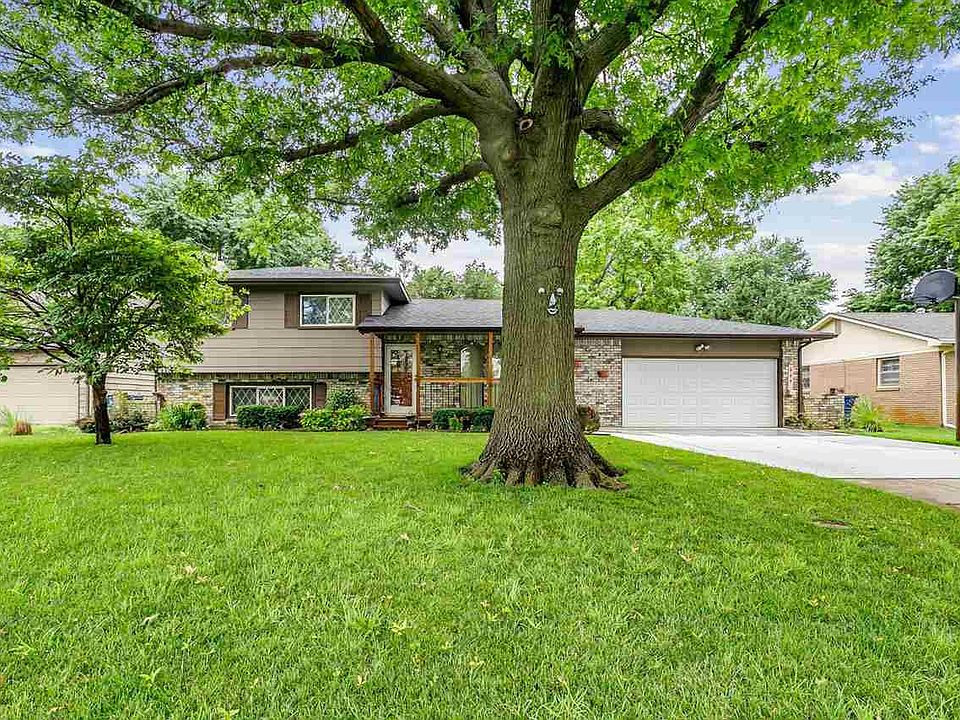 Located in the Valley Center School District and just across the street from the beautiful McLaughlin Park that has a fishing pond, splash park, playground, and more, this gorgeous split-level home is tucked away in a wonderful neighborhood that you will love calling "home." It has been lovingly maintained by just one owner and the pride of ownership shines throughout. It only needs a few cosmetic updates and you'll have easy sweat equity! Pull up front and you'll notice the lovely curb appeal, with a partial brick façade, diamond-paned windows, mature landscaping, and lush green grass. Step inside and see the great features in every room. The multi-level layout is perfect for spreading out. The kitchen has tons of cabinets, a peninsula eating bar, wall oven, and an attached dining room that opens to the incredible back deck. There are four spacious bedrooms and two full bathrooms spread throughout the home, plus an additional family room and recreation room on the lower levels. There's also a big, unfinished storage space with built-in shelves for your convenience. The backyard will be your private oasis. It has a HUGE covered deck where you can enjoy the weather all year round. There's also a large storage shed for your tools and lawn equipment. This home has it all! With McLaughlin Park in such close proximity, you'll be just steps away from enjoying long walks in beautiful surroundings. Take the little ones to the splash park and enjoy the summer outside. You'll also be located just down the street from local schools, Valley Point Golf Course, several restaurants and shopping options, and easy highway access via I-135. Schedule your private showing and come see this gem TODAY before it's gone for good!