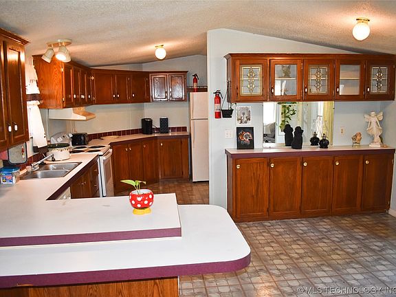 If you are looking for an opportunity to own in an area known for abundant outdoor recreational opportunities but struggle to find an affordable option, look no further. Situated on approximately two acres just northeast of Swink (Valliant address) lies this 1,216 square foot home manufactured in 1999. Open-concept living, dining and kitchen areas are light and bright due to the many windows found throughout. The kitchen and dining area have abundant cabinets to meet all of your storage needs. The kitchen features a tile backsplash, double-basin stainless steel sink, dishwasher, electric range, and a bi-level breakfast bar. The refrigerator is not included but is negotiable. There is a laundry room that has full-size washer dryer connections and it is conveniently located right next to the owner's suite, which has a large bedroom and bathroom with a garden tub and separate shower along with dual walk-in closets. On the other side of the home is a full bathroom and two additional bedrooms. Per Seller, 2023 updates include the replacement of the electric range in the kitchen, the indoor HVAC unit, water heater, front and back doors and insulated skirting around the home's exterior. Also per Seller, in 2016 the home was updated with new carpet and vinyl flooring, wall texture and paint, and front and back porches, with the back being partially screened in. The Seller owns additional acreage this property is a part of so deeded access is being provided. Per Seller, the property has its own septic system (tank with lateral lines per Seller) but the well is shared with the other home on the property belonging to Seller. If Buyer wishes to have their own well, this is something Seller is willing to negotiate. Call agent for further details. No rental option or rent-to-own. Official property address is 669 N 4420 Rd, Lot 1, Valliant, OK 74764.