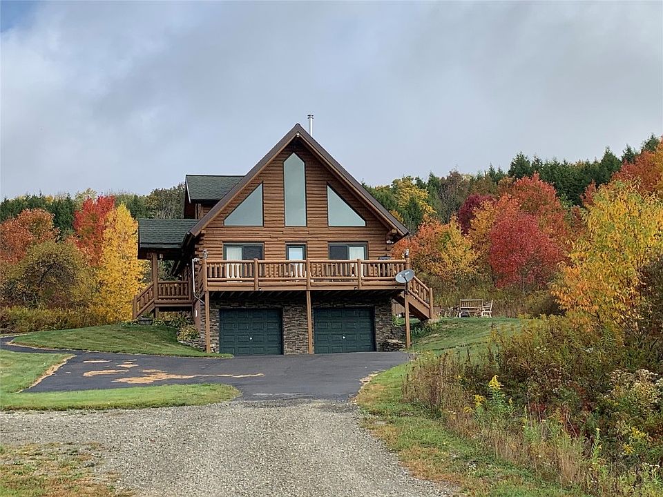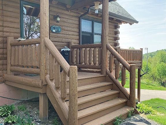 What more is there to say about this that the pictures don't say! This beautifully constructed Log house sits on 17.59 acres. Construction was finished in 2007 and is a Lok-n-Logs home. Talk about privacy with a driveway of over 1000 ft. The loft-style Master Bedroom with the Master Bath has beautiful views from the large windows. Large kitchen area leads into the living space which over looks a beautifully construced deck that is an amazing 27 ft long and 10 ft deep. The attached 2-car garage leads into a finished LL that can be used for whatever your imagination can dream of. Now lets talk about the newly constructed 3-bay barn with a foot-print of 29' x 38' you will be able to store almost anything inside. Not only is the LL of the barn amazing it also has an upper level that measures a remarkable 15' x 30'. I could think of so many possiblities for these spaces. All this seclusion and you still have High Speed Fiber Optic to the house. Call your favorite REALTOR before it's gone.