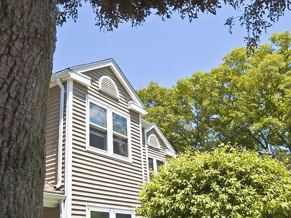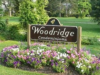 DESIRABLE WOODRIDGE TOWNHOMES - 1,900 sqft of living on 3 levels. 2 Br, 1.5 baths. Very private setting. Enjoy eye-catching mature landscaping bursting with annual color. Close to highways & stores. Fireplaced living room with slider to balcony/deck overlooking mini wetland sanctuary. Observe nature at its best!Master bedroom w/cathedral ceiling, skylight, ceiling fan & master bath. Huge family room in lower level with sliders to backyard. Ample guest parking, Owners manage complex. A great buy!