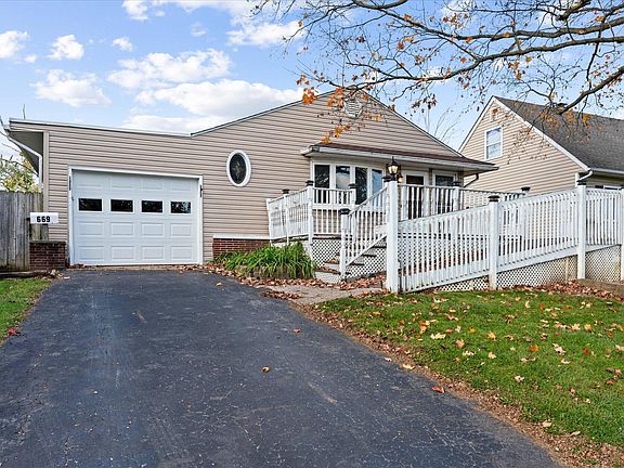 This remarkable 1 story home located on a quiet street has a lot to offer. The large front deck is the perfect spot for those morning coffees or just to sit & relax after a long day of work. The inside is spacious with it's large living room & dining space. There are also multiple skylights throughout the home as well. The kitchen has newer appliances & is open to the dining space. There are 3 nicely sized bedrooms & a full bathroom that finish off the main level. The basement is large & has a custom bar, full bathroom & family room. The attached garage is large & has a large storage room off the back of it. The backyard is fully fenced & has a large storage shed.