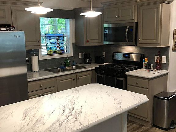 2018 Skyline Shore Park (model #1981 CTE) Like New this is a must see. Corner Lot #449 - Grab your bathing bathing suit and get ready to enjoy your summers. Turn key and ready to go. Includes all furnishings, kitchen accessories, draft beer cooler and shed. Everything is 2 years old, but you wouldn't know it. It was rarely/never used. Stoned lot with parking for 3 cars. Kitchen offers stainless steel appliance, tile back splash, island, and vinyl hardwood floors. 2 queen beds and queen sleeper pull out sofa. Master Bathroom has an overdose shower and walk in closet. 2nd bathroom has a full size bathtub/shower. The unit offers a 350 gallon holding tank. Amenities include: dog park, pool, swimming lake w/beach, playgrounds, tennis courts, volleyball court, basket ball court, pickle ball court, fishing and much more.