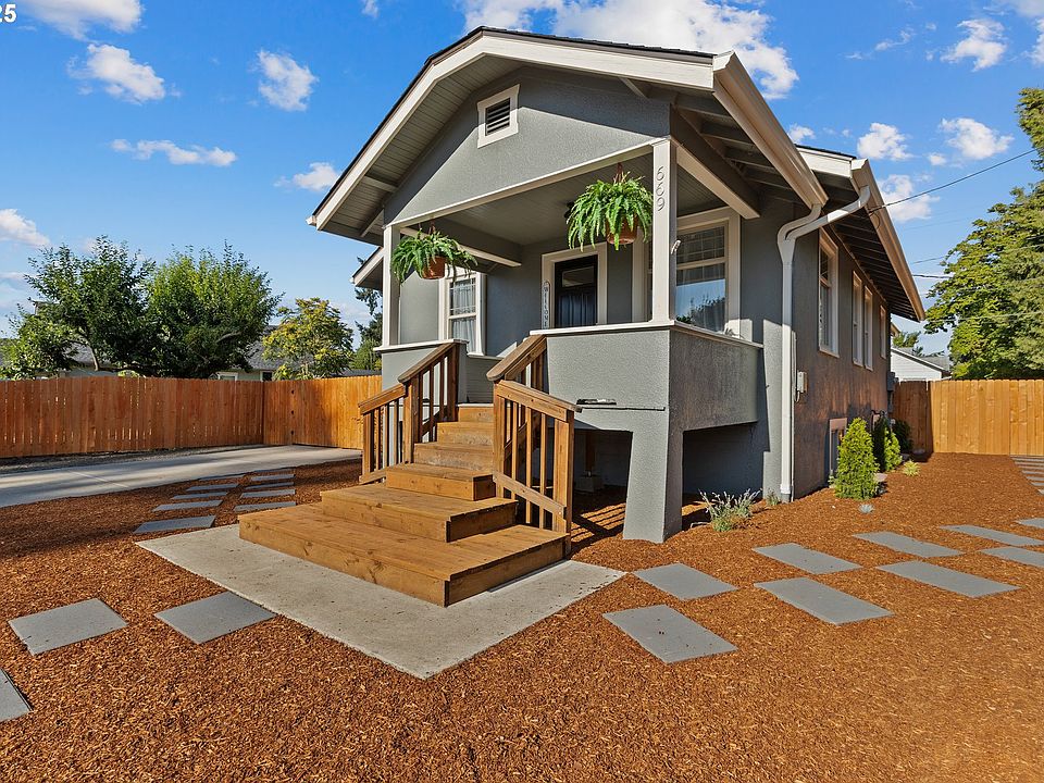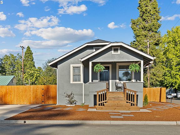 Welcome to this cozy and beautifully updated 4-bedroom, 2-bathroom Bungalow nestled on the convenient westside of Roseburg, OR. Brimming with charm and functionality, this cute and cozy home offers flexibility for multigenerational living, rental income, or your own peaceful retreat. Step inside from the covered front porch to a light-filled living room that flows into a dining area and efficient galley-style kitchen. Fresh interior and exterior paint, along with thoughtful updates throughout, make this home move-in ready. The enclosed back porch provides a quiet spot to sip morning coffee or unwind at the end of the day. The main level features two spacious bedrooms and a full bathroom—ideal for single-level living or shared family space. Downstairs, the daylight basement includes two additional bedrooms, a full bathroom, and its own private exterior entrance, making it perfect for guests, extended family, or potential rental income. Consider renting out the lower level or using it as an Airbnb to offset your mortgage! Outside, enjoy a fully fenced backyard with brand-new cedar fencing, fresh landscaping with bark mulch, arborvitae accents, and paver stone pathways. There's ample on-site parking plus room to expand for RV storage or extra vehicles. A detached storage shed offers space for your garden tools and outdoor gear. Don’t miss this versatile and affordable opportunity in a great Roseburg location—close to schools, parks, and amenities. Whether you're looking for a charming place to call home or a smart investment, this bungalow has it all! House hacking potential!