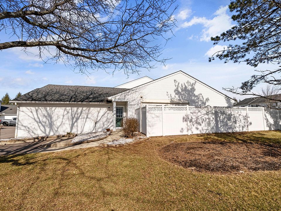 Absolutely gorgeous, over 1200+ sq ft 2 BR, 2 BA end-unit ranch condo with 2 car attached garage. This condo is beautiful! Beautiful open floor plan with a huge great room offering a corner fireplace, & a massive sun-drenching sliding door, a formal dining area & a well-appointed kitchen loaded with plenty of cabinets, granite countertops & more, all with new luxury vinyl floors. Upgrades & extras include updated bathrooms, enormous laundry room/flex space, new flooring throughout, upgraded lighting fixtures, stone front, a large private fenced brick patio area, & more. Community offers a swimming pool, clubhouse & workout facility. HOA fee includes water/sewer/snow removal & lawn care. Nice & quiet location with lots of green space. Great access to Rt. 33.
