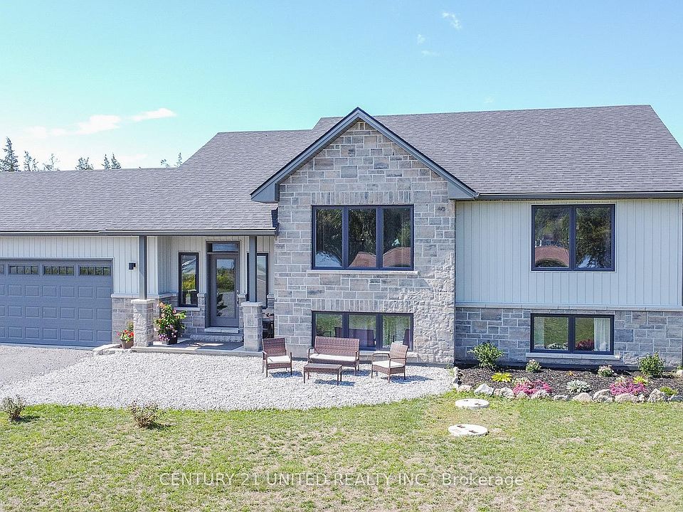 Welcome to this beautifully designed raised bungalow, built in 2021 and situated on a spacious 1-acre lot with picturesque views of the Trent River right across the street. Offering 3+3 bedrooms and 3 full bathrooms, this home provides ample space for families, guests, or multi-generational living. Step into the open-concept main floor featuring vaulted ceilings, and a cozy propane fireplace. The kitchen and dining area flow seamlessly to the deck and fully fenced portion of the backyard, ideal for entertaining or enjoying quiet evenings around the natural flagstone firepit area. The fully finished basement boasts 9-foot ceilings, oversized windows, kitchenette and three additional bedrooms, creating a bright and welcoming lower level. Located just 5 minutes north of Campbellford, you're close to all town amenities, including the famous Dooher's Bakery and Empire Cheese Factory. This is country living with convenience! Don't miss your chance to own a modern home in a peaceful setting with river views.