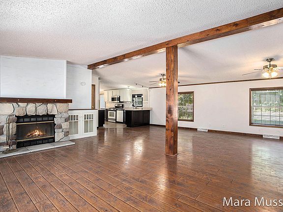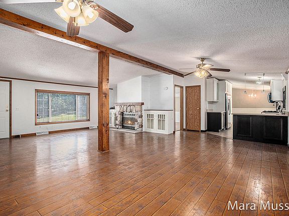 7.2 acres and just 1 mile from Gun Lake, this 3 bed, 2 bath home, complete with a fully renovated gourmet kitchen featuring granite counters, new cabinets, stainless steel appliances and new vinyl laminate flooring throughout, is available for the 1st time. The over-sized garage has 2 rooms at the back, 1 used for a workbench area and 1 for a craft area. The primary bedroom ensuite has a slipper soaking tub, new cabinets, sky light and walk in closet. The huge living area with fireplace, built in cabinets, and dining room separates the other 2 bedrooms and full bath. Off the back you will find a huge 3 tiered covered deck for your enjoyment. Home is wired to handle a hot tub that sat on the deck. 2 storage sheds, chicken coop, fire pit area and several gardens provides for a private and relaxing environment. Schedule your private tour today
