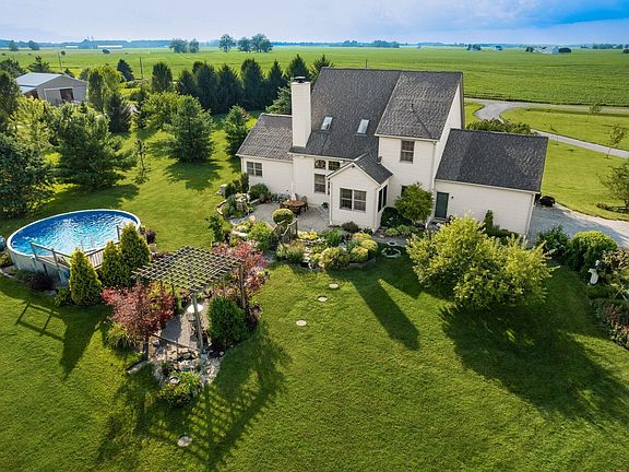 Welcome to Paradise! Just NE of Delaware! One-owner custom-blt on a 7.11 acre dream lot! It's all here! 100s of trees, flowers, bushes incl pear, apple, weeping willow, crabapple, raspberries, blueberries, blackberries, grape arbors. Raised Gardens. 24x32 Pole Barn & 12x16 She-Shed, both w/elec & water. Chicken Coop, Beautiful Pool, w/deck; Koi Pond with bridge, waterfall; Firepit, Pergola w/Arbor & lights. 3.5 acres of deep WOODS w/paths for ATV. Quality built w/9' ceilings, solid wide wdwk & moldings, 6-panel doors. Grt Rm w/18' vaulted skylit ceiling, stone fplc/wood insert, wet bar. Lg center hall divides Liv Rm/Den & Formal Dining. First floor primary w/WI closet, bath w/garden tub, Dbl vanity, heated towel rack. Hdwd Floors, Hickory Cabinets, Corian Counters. Back Pantry, Generator