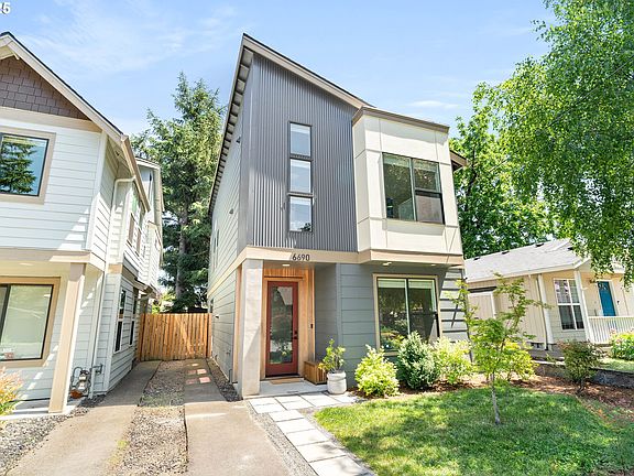 Nestled on a tranquil Neighborhood Greenway connecting the Springwater Corridor and Mt. Tabor, this stunning home is uniquely positioned to capture abundant natural south-facing light through expansive glazing. The custom dining room features a built-in storage bench, perfect for gathering family and friends.Inside, the spacious layout welcomes you through tall doors into rooms with soaring 9-foot ceilings. The main floor includes an accessible bedroom or home office, complemented by a full bathroom with a walk-in shower—offering versatile living for guests or remote work.The primary suite is a true sanctuary, boasting vaulted 14-foot ceilings and serene views of the surrounding tree canopy. Unwind in the soaking tub beneath a large east-facing window where you can gaze at the stars.This isn’t your average builder-grade newer construction— architectural touches throughout create a warm Scandinavian vibe, featuring designer Muuto and West Elm lighting and hardware, plus finishes like the custom dining bench that comfortably seats everyone at the table. Three bedrooms include walk-in closets and all four bedrooms include custom organizers for maximizing storage.Enjoy a low-maintenance, dreamy yard filled with native plants, a new south-facing privacy fence, an airtight lockable storage shed, and a custom deck ideal for outdoor relaxation or entertaining. [Home Energy Score = 10. HES Report at https://rpt.greenbuildingregistry.com/hes/OR10204854]