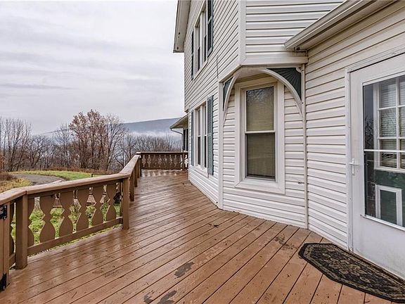 Remodeled farmhouse with spacious rooms. Living/Dining room has open layout with large stone fireplace and built-in bookshelves. Deck wraps around from small enclosed porch on the side to the enormous heated porch in the front and 2nd deck. The views of Canandaigua Lake stretch from North to South. 2 bedrooms upstairs. Heated porch has panoramic views of the Lake and hills and offers additional living space and could be used as family room or master bedroom. Road frontage along both State Route 21 and Phillips Rd.