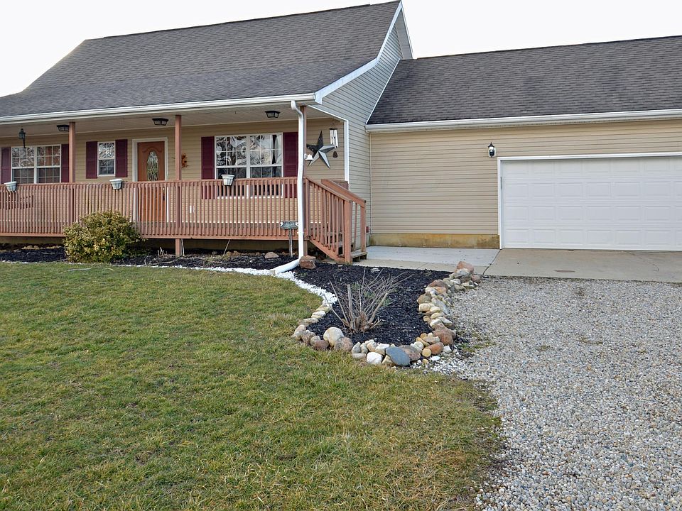 This beautiful home has 8 + acres complete with a 6-stall barn, 4-acre hay-field, and three fenced in fields for large animals! The home features a large open living area with cathedral ceilings, 3 bedrooms and 2 full baths with new fixtures. The newly updated kitchen includes beautiful new granite countertops and subway tile backsplash! New stainless-steel sink with faucet and energy efficient appliances! This home has tons of storage, new ceiling fans, baseboard trim, freshly painted in beautiful neutrals. Relax and see the sunset view from your enclosed sunroom and step out onto the concrete patio to entertain friends and family! The finished basement is a perfect space for a media room, home office or playroom! The 2.5 car garage has extra storage. Jonathan Alder Schools A Must See