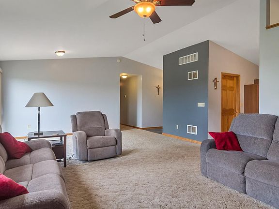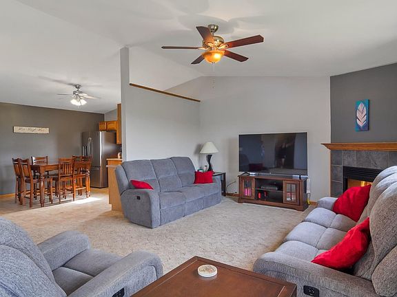 Welcome home to this open concept ranch with 3 bedrooms, 2 bathroom and a 2 car garage. The open concept plan lends a bright and spacious feeling of living space throughout. The large living room has a fireplace and vaulted ceilings that flow into the kitchen, which offers ample cabinets, lighting, pantry, and stainless-steel appliances. The spacious main bedroom has a walk-in closet and bathroom that includes a whirlpool tub. There are 2 additional nice sized bedrooms with great closet space, along with a finished laundry room. The amazing backyard is landscaped, has a 2-tier deck, and an above ground pool which is great for entertaining this summer. The shed and swing set stays with the home. Don't let this one get away