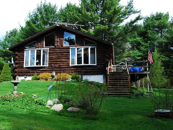 Secluded log home 45 Minutes to Rochester or Corning. Peaceful retreat with pond on over 26 acres. Passive solar, wood stove, electric heat and heat pump and air conditioning. Open concept floor plan, hardwood floors and new carpet in bedrooms. Kitchen appliances two years old. Partially covered deck