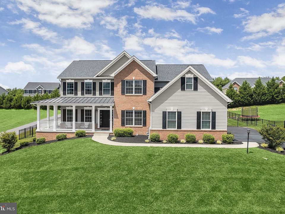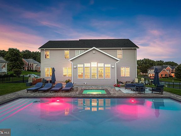 Tranquility awaits in this exquisite four bedroom home located in the Waters Edge neighborhood is truly a sight to behold, situated on a spacious 0.46-acre lot at the end of a peaceful cul-de-sac offering exceptional details and a picturesque setting. As you approach the home, you are greeted by a covered wrap-around front porch, providing a welcoming space to enjoy your morning coffee or relax in the evening. Stepping inside, you will be captivated by the elegant foyer, featuring a custom hardwood stairway with upgraded monkey rails. The main level of the home is designed with both comfort and style in mind, boasting hardwood floors throughout. Off the foyer, there is an office which is ideal for those who work from home. The living room and dining room exude timeless design with crown molding and offer ample space for hosting gatherings. Prepare your favorite meals in the gourmet kitchen which is a true delight, featuring gorgeous quartz countertops, an accent backsplash, and 42" soft-close cabinetry. The center island provides additional workspace, while the large farmhouse sink adds a touch of charm. The kitchen is fully equipped with top-of-the-line KitchenAid appliances, including a built-in microwave with convection cooking, a gas range with a range hood, a second wall oven, an ultra-quiet dishwasher, and a French door refrigerator and freezer. Adjacent to the kitchen, the sun room boasts a soaring cathedral ceiling, allowing for plenty of natural light. Sliding glass doors lead to the rear yard, creating a seamless transition between indoor and outdoor living spaces. For moments of relaxation, the family room offers a cozy wood-burning fireplace, perfect for unwinding after a long day. Additionally, the main level includes a laundry room with access to the two-car garage and a convenient half bathroom. Moving upstairs, you will find the expansive primary bedroom suite, showcasing a vaulted tray ceiling, a dressing area, and two large walk-in closets. The luxurious primary bathroom boasts an impressive frameless glass shower, a soaking tub, a dual vanity, and a separate water closet. The second bedroom suite also offers a private bathroom and a walk-in closet, providing a comfortable space. Down the hall, the third and fourth bedrooms share an adjoined bathroom, each with their own walk-in closets and crown molding. The lower level of the home is fully finished and offers additional living space. The recreation room has space for everyone's activities and the media room is perfect for watching the big game or enjoying movie nights, complete with a built-in AV system. A fourth full bathroom, a large utility room, and a bonus storage room complete the walk-out lower level. Outside, the fully-fenced rear yard is a haven for relaxation and entertainment. A beautiful paver stone patio provides the ideal setting for outdoor gatherings and features a grilling station that is hardwired for gas. The highlight of the yard is the 20x40 heated saltwater pool, built just two years ago and features stadium steps for easy access. The 8x8 in-ground hot tub is equipped with separate piping, allowing it to remain open during colder months when the pool is closed. Both the pool and hot tub are wifi-enabled, allowing you to control everything from your phone, including the color-changing lights. A large, 10x12 storage shed is ideal for storing your pool floats and toys. This home is filled with thoughtful upgrades, including wifi-enabled outdoor speaker systems, Cat-6 ethernet wiring throughout the entire home, custom closets organizers, and energy-efficient dual-zoned heating and cooling systems that ensure year-round comfort. This stunning four-bedroom home in the Waters Edge neighborhood blends a modern and inviting atmosphere, exceptional craftsmanship, and a host of desirable features both inside and out.