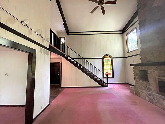 Located on a wooded, private, 2 Ac lot on Bloomington's E side. Just a short drive from the Salt Creek waterfowl area & Lake Monroe. When prepping this home for sale, we nicknamed it the Owl house, as it is a nature lovers dream location. As you enter you are greeted by a 2-story living room with a large Brown Co stone fireplace and windows overlooking a wooded view. Adjacent to the living room is a formal dining room with access to a great back deck. Main level features a full kitchen with tons of storage & large center island design. Last of all the main features a den/library with built in bookshelves and a guest half bath is off the main entry. Upstairs is home to a large master bedroom with a private bath and 2 more spacious bedrooms with a hall bath. Downstairs is an unfinished space to make into whatever you desire. There is already a fireplace and some partial finishes plus a 2 car garage. A creative remodel could include windows and a back walkout, which basement and grade elevations would be perfect for. New roof installed this summer. This home is being sold "as is". The home does have some foundation and drainage issues, along with needing lots of TLC. Please email listing agent for details.