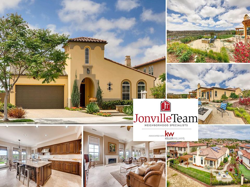 ** SOLD BY THE JONVILLE TEAM, CONTACT US TO SCHEDULE A HOME EVALUATION AND MARKETING CONSULTATION ** STUNNING SINGLE STORY CUL-DE-SAC VIEW PROPERTY IN LA COSTA GREENS/CARLSBAD. Enjoy the rolling hills, golf course & sunset views! This beautiful home features an open floor plan with formal entry, vaulted ceilings, crown moulding, spacious eat-in kitchen, granite counter tops, center island, stainless steel appliances, premium custom stone flooring + master with slider door opening up to the yard. Entertainers' view yard with firepit & covered paver patio. 3 car garage. Carlsbad schools! Community pool, recreation center and tennis!