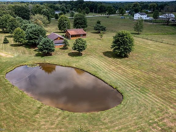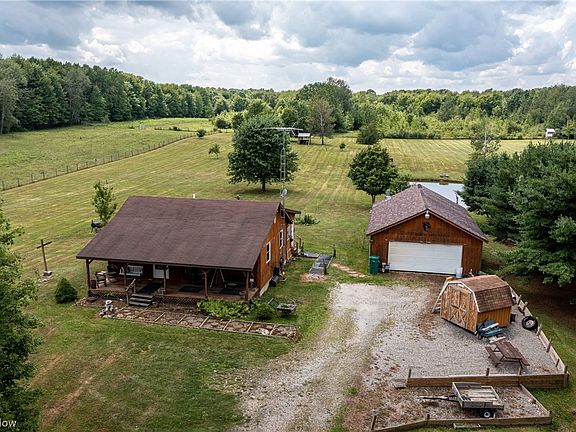 Welcome to country living at its finest! A long, gravel driveway leads you up to this 2 bed, 1 bath cabin that is nestled on a beautiful 10 acre lot with many features to enjoy. The inviting front porch will draw you in to sit and relax. Inside, the open concept living room and kitchen offer plenty of space with lots of natural light. Down the hall, you’ll find two bedrooms and a full bathroom with a walk-in shower and laundry. The den provides additional living space with a sun porch off the back of the home with screened in windows. A 24x40 detached garage with electricity offers lots of space for cars, toys, or a workshop. A large 30 ft deep pond is stocked and ready for fishing. In the back of the property, there is a little pavilion with a picnic table. This beautiful property is just 15 minutes from Pymatuning State Park and 30 minutes from Lake Erie beaches.