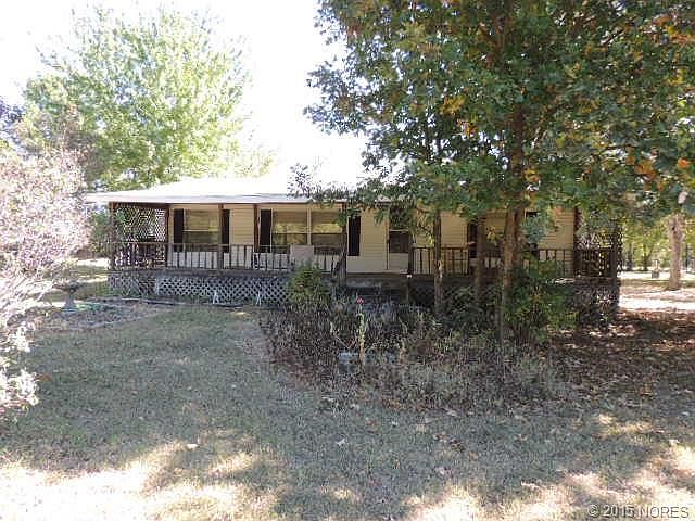 Charming 3 bed, 2 bath, with huge covered front & back porches. Nice open living, dining & kitchen. Split floor. Large storage room added to back. Pretty treed lot teaming with wildlife. Close to Lake Fort Gibson and Flat Rock Recreation area