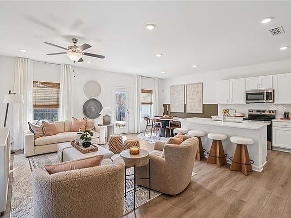 Designed with Ashton Woods’ Minimalist Design Collection, the Foxglove Plan unfolds with an open concept on the main floor, featuring a generously sized island kitchen with modern stainless-steel appliances. The kitchen seamlessly transitions into the dining and family rooms, perfect for entertaining. With 3 bedrooms and 2.5 baths, this home is designed for comfort. Ascend to the second floor to discover a sprawling Primary Suite with a vast walk-in closet and a modern bathroom featuring double vanity. The second floor also has two more bedrooms, and second full bathroom. Conveniently located just off Mableton Parkway, the community provides a quiet retreat from the city. Residents will enjoy easy access to major highways, including Highway 78, I-20, and I-285, making commuting simple. Nearby shopping and everyday conveniences are also just minutes away. This home is under construction and will be complete in February 2026! For further details and information on current promotions, please contact an onsite Community Sales Manager. Please note that renderings are for illustrative purposes, and photos may represent sample products of homes under construction. Actual exterior and interior selections may vary by homesite.