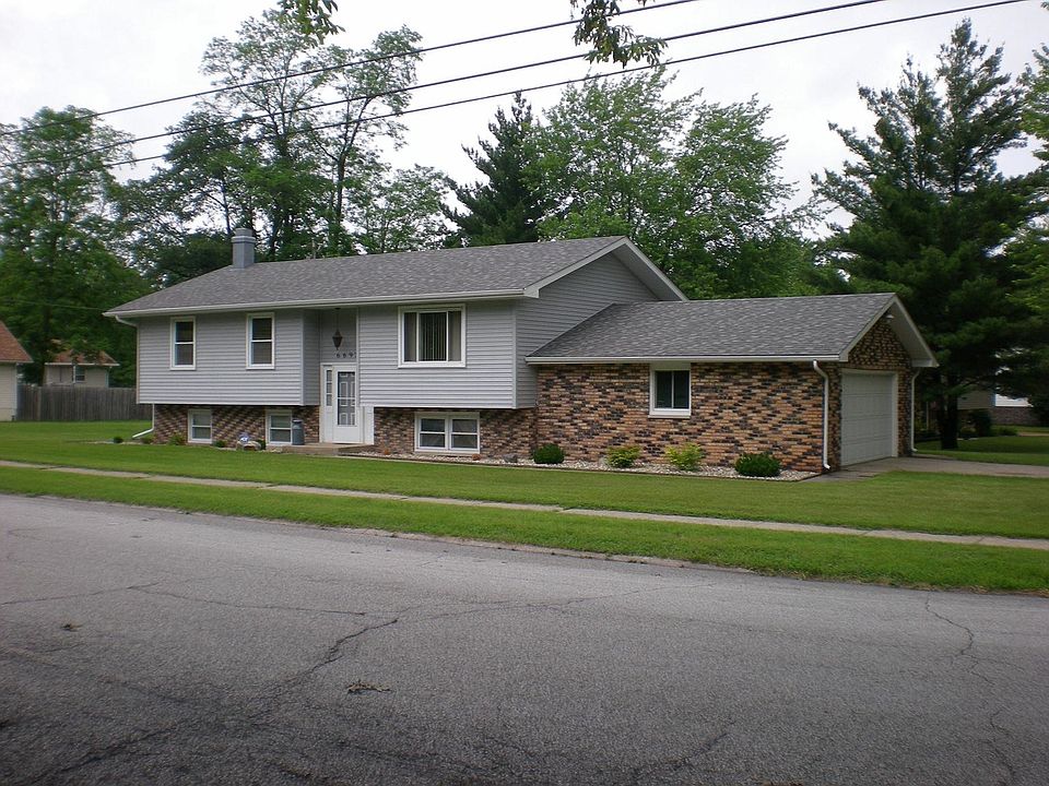 Attractive brick & vinyl, split-level home! 2256 Sq Ft with 4 bedrooms, 1.5 baths,3 bedrooms up, 1 down. Lower level is very nicely finished with large wet bar & fireplace. Side entry garage. New siding and roof in 2013. Nice deck off of rear of home. Security system in place.