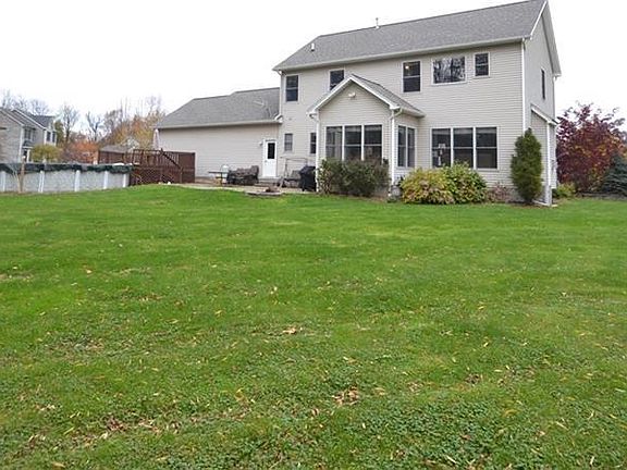 WHY BUILD?? This better than NEW 2200 sf 4/5 bedroom 2.5 BATH Custom Built home has it all!! WIDE OPEN FLOOR PLAN features a HUGE MAPLE Kitchen w/island Breakfast Bar, SS appliance package, SUNROOM eating area & Tile Floors! Great room w/ wall of windows and gas Fireplace! French Doors lead to the 1st floor office w/ built in bookcases! Formal Dining Room w/ Tray ceiling, chair rail & Wood floors! Large Foyer w/ leaded glass front door & Turned staircase! FIVE STAR master suite w/ sitting area, jacuzzi bath & Walk in closet! 1st Floor Laundry! Partially finished basement w/ family/rec room & 5th BEDROOM! HI efficient Furnace! CENTRAL AIR ! Room for all your toys in the Oversized 3 CAR GARAGE ! Rear Patio & Deck lead to the pool and private rear yard backing to TOWERING PINES! All this & More on 1 ACRE!!!