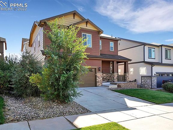Hello Colorado home buyers! Have you ever driven by a home and said I would love to own that home--here is your chance. Come on in and look around, you will find yourself not wanting to leave. This home sits in the highly coveted Banning Lewis Ranch subdivision. Open floor plan, 2 story style home that boasts huge ceilings, 4 big bedrooms, 3 bathrooms, and a big 2 car garage. All apliances included!! Air conditioning and big windows bring in tons of natural light. Gourmet kitchen with granite countertops, big island with room for seating, gas stove, microwave, vent fan, pantry, and windows everywhere to bring in all of that natural light. Nice big master bedroom with attached bathroom with huge shower, double vanity with corian counters, HUGE walk in closet with nice big dressing area and built ins. Laundry room can also be found on the upper level. Office space right on the upper level. OVERsized garage with lots of storage. Big Trex deck. Sprinkler system with very nice landscaping. Garage is insulated and finished with drywall. Miles of walking, biking and running trails. Banning Lewis Ranch has workout facilities, recreational center with a pool, weight machines, and offers several amenities such as movie night in the park and other entertainment. This home has it all plus so much more. Dont miss this home. I could go on and on, but how about I just say, Welcome Home!!