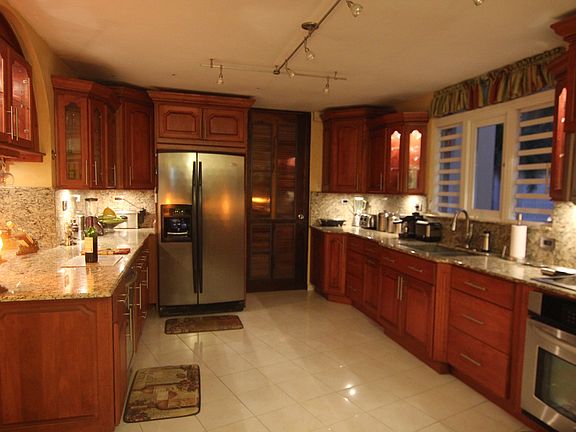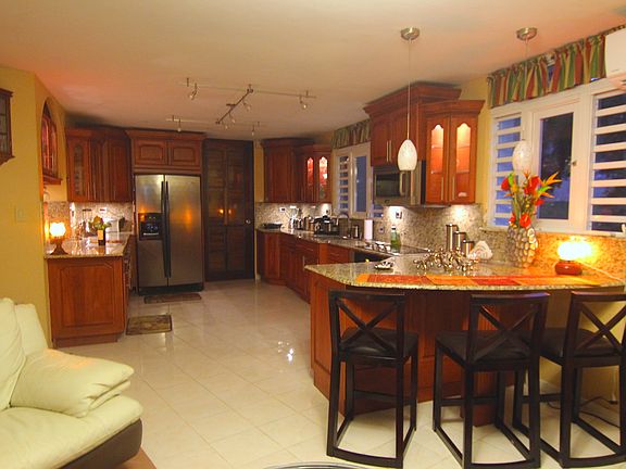 Beautiful house at Cerro Gordo, Vega Alta. Walking distance from the beach. It has another property for guest in the backyard. A 4,100 square meter beautifully landscaped lot. It has approximately 5,500 sq. ft. Spacious kitchen and fully equipped. Pool, tropical garden. For more information (787) 692-1114.