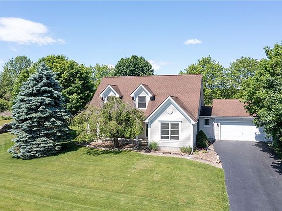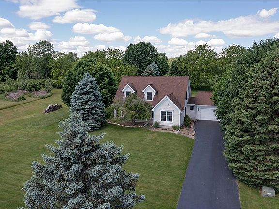 Stunning , private location right outside the village of Livonia. Beautiful setting bordering golf course. Two first floor bedrooms (one currently used as office). Two 2nd floor bedrooms. Two full baths. Bright, eat-in kitchen overlooking deck and pool. First floor laundry. 13 acres! Not many places like this!