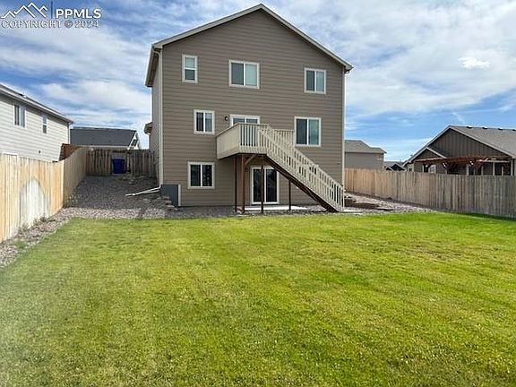 Beautiful home, with walk out basement. Hardwood floors and carpet. Open floor plan. Large fenced backyard. Close to Fort Carson, Peterson Field and Schriever. Home has water softener and humidifier. Close to schools and hiking trails. Hardwood entry, kitchen, & dining room. Separate den on main level. Stainless steel kitchen appliances and birch cabinets with crown molding, kitchen island. Recessed lighting in kitchen, lighted ceiling fans in great room and master. Ceramic tile entry, baths, and laundry. Open floor plan, small loft, upstairs laundry room. Compare us to other builders in Lorson Ranch: we include hardwood kitchen and dining floors, hardwood or ceramic tile entry, stainless steel appliances, upgraded trim including windowsills, upgraded lighting including ceiling fans in great room & master + recessed can lighting in kitchen, ceramic tile bath/shower surrounds (not plastic slide-in), lever door knobs, decora light switches, and too many other standard features to list.