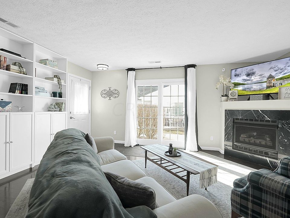 Rare Find! Welcome home to this completely updated End-Unit RANCH Condo in Canal Winchester w/ 2-car attached garage & 2 assigned parking spots! & fully fenced in yard w/ 2 patios! The spacious open floor plan features hardwood floors and NEW Tile flooring, large great room w/ corner ventless gas fireplace, updated kitchen w/ stainless appliances, eating area, 2 huge bedrooms, 2 full baths, & large utility room w/ storage. (There is a gas line hook up for the range.) Community features a clubhouse, pool, park & fitness facility. Just minutes to 33 & 270, the airport & shopping centers! NEW: Furnace; Water Heater; LVT Floors; Lighting Fixtures; Ceiling Fans; Sliding Door!