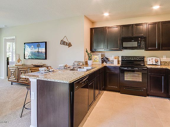 This all concrete block constructed, one-story layout optimizes living space with an open concept kitchen situated between the living area and dining room. The kitchen comes with all appliances, including refrigerator, dishwasher, electric range, and microwave. The owner's suite, located at the back of the home for privacy, has an ensuite bathroom. Two additional bedrooms share a second bathroom. The laundry room comes equipped with included washer and dryer. Pictures, photographs, colors, features, and sizes are for illustration purposes only and will vary from the homes as built. Home and community information including pricing, included features, terms, availability and amenities are subject to change and prior sale at any time without notice or obligation. CBC039052.