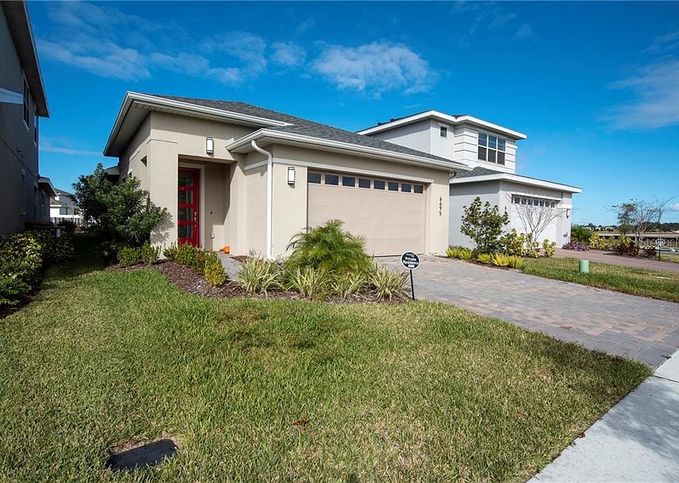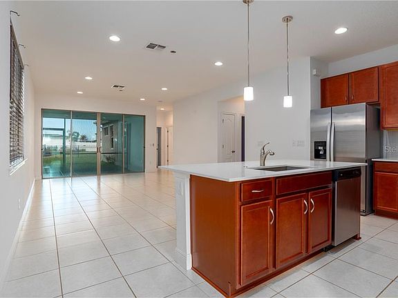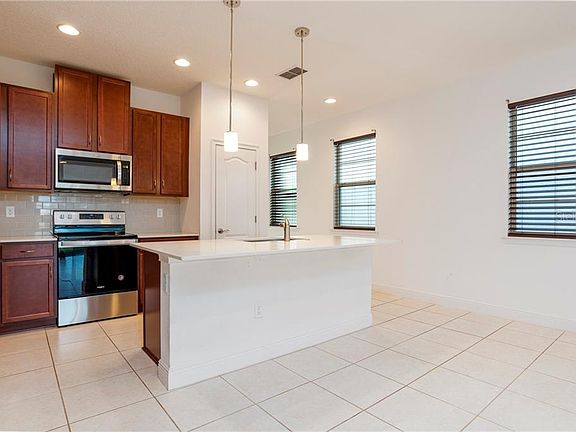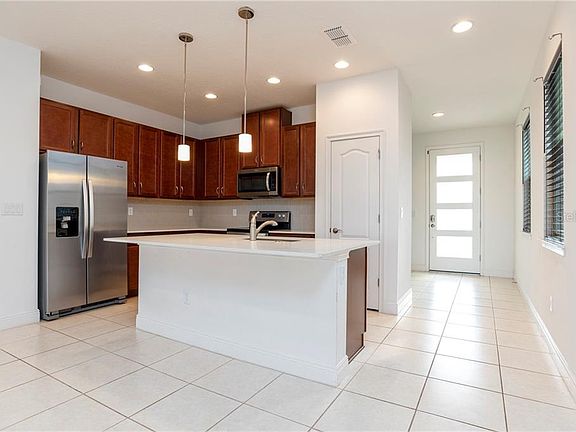 Located at the new Osprey Cove community, the one year young three bedroom, two bathroom home with a two-car garage is move in ready. This "Beauclair" model has a little of everything from ceramic tile flooring to open kitchen design with dark on stainless whirlpool appliances, 42-inch cabinets, quartz countertops in both kitchen and bathrooms, as well as a separate laundry room. The exterior features brick pavers, covered and screened outdoor living that leads to the perfect sized backyard. Plenty of double pane insulated screened windows to let the Florida sunshine in! Situated across from the playground and dog park, you'll find yourself comfortably settling into this new home and community. Ideally located far enough to get away but close enough to enjoy dining, entertainment and shopping. Only minutes to Florida Turnpike, Melbourne beach, Kissimmee, Lake Nona and OIA.